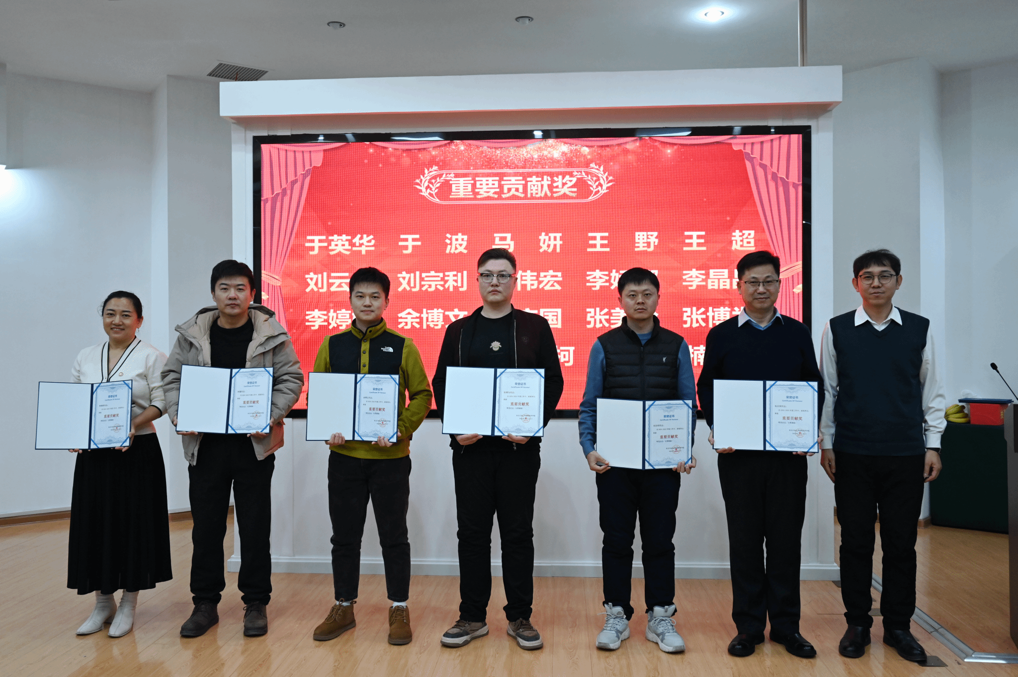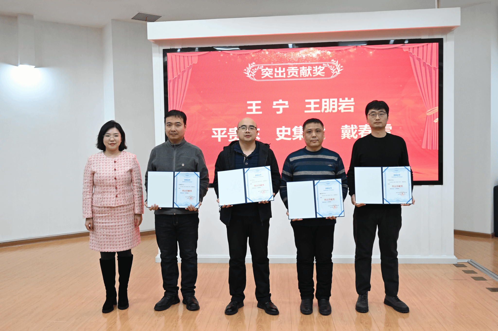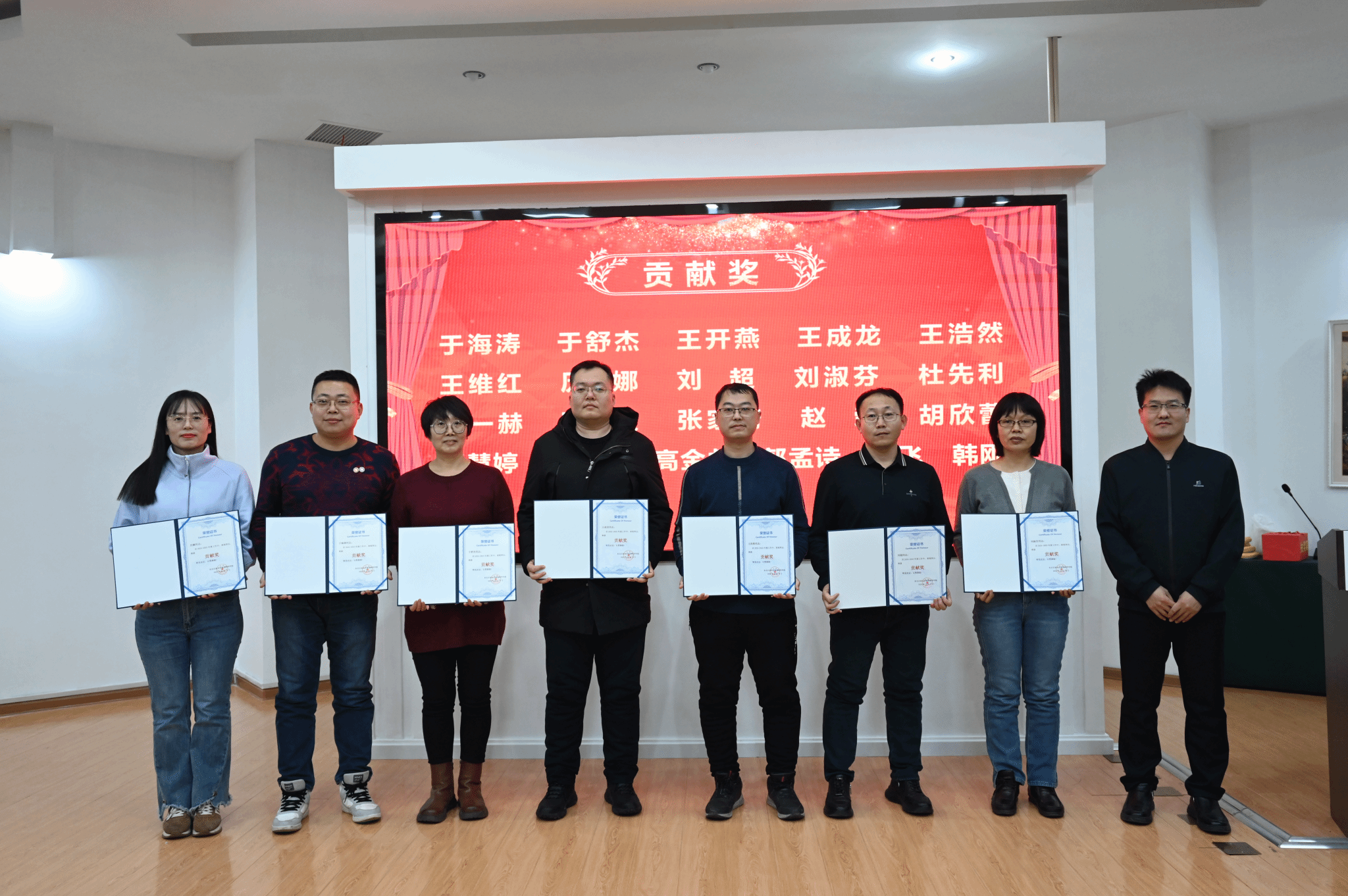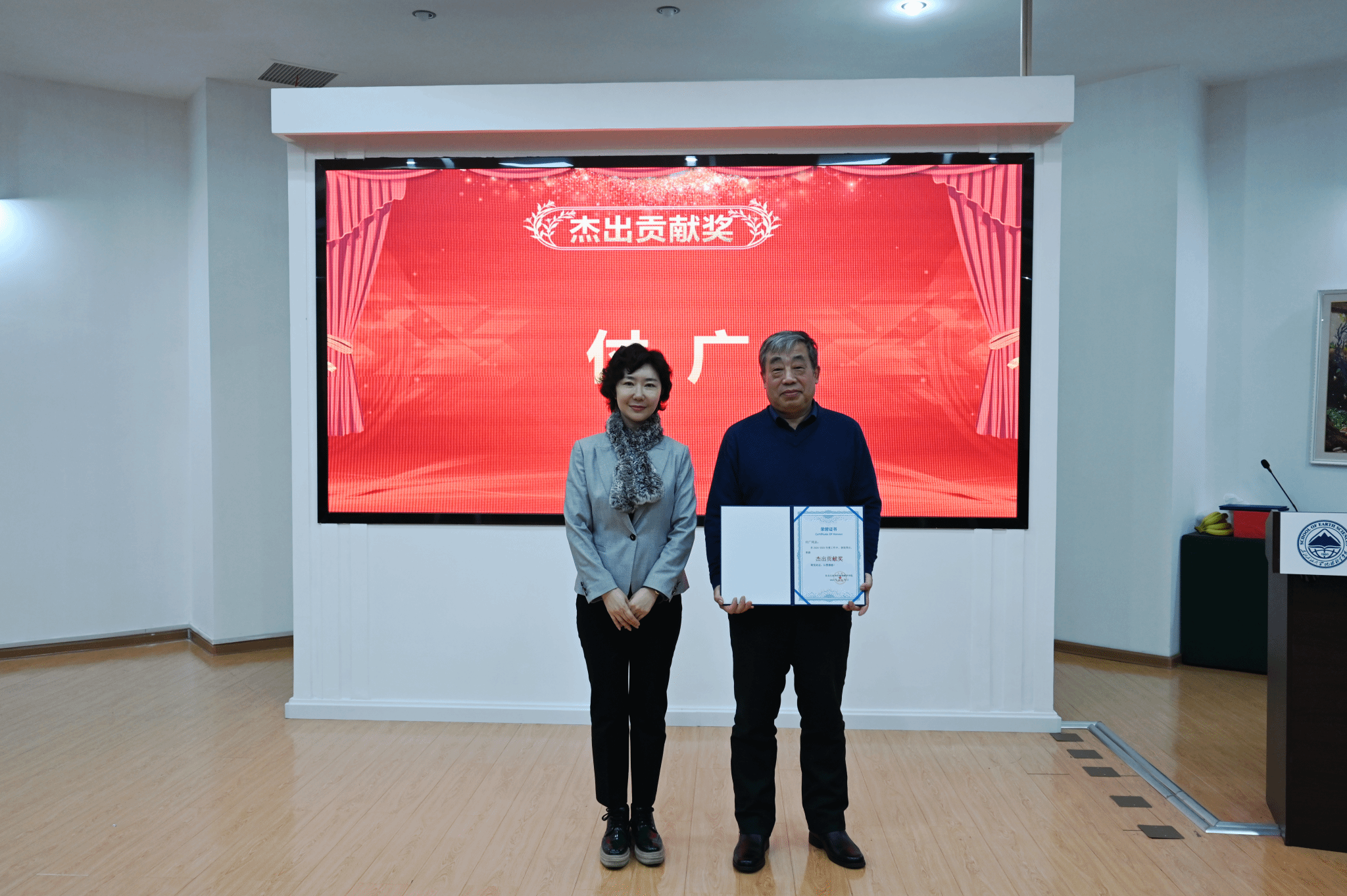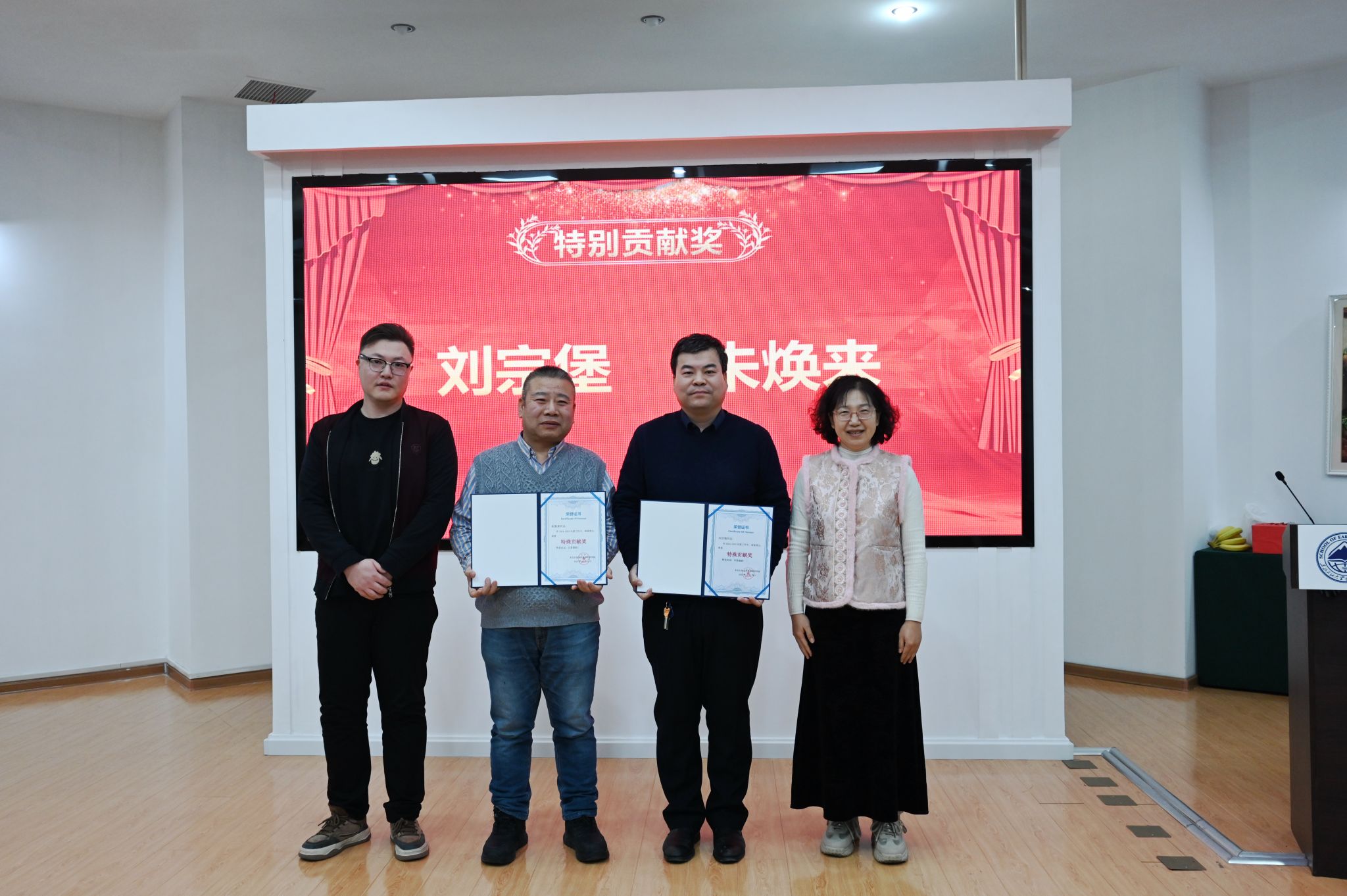 随后,党委书记韦丹宁宣读《关于表彰2024和2025年度先进集体、先进个人的决定》。在热烈掌声中,获奖集体代表与个人依次上台,学院领导为其颁发荣誉证书。表彰仪式简洁庄重,现场气氛昂扬,充分激发了教职工荣誉感和进取精神。