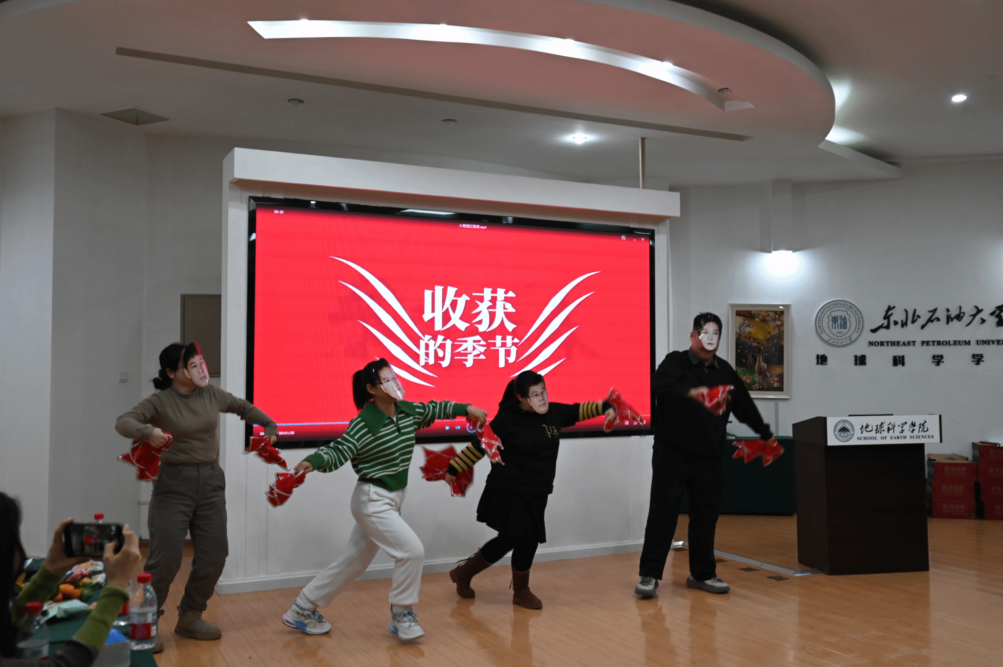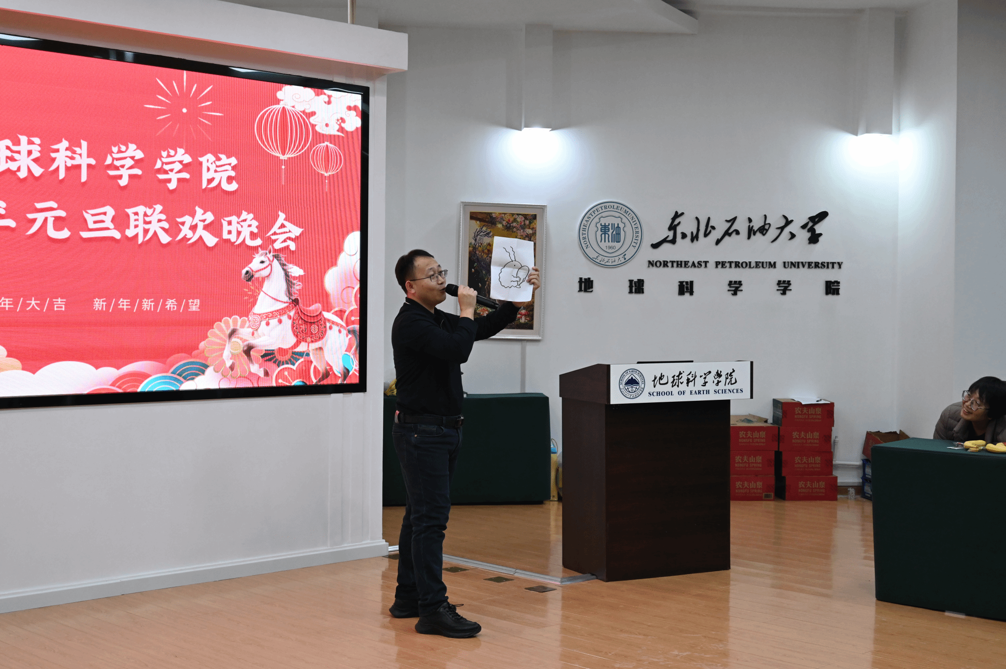 表彰环节结束后,迎新年联欢活动在欢声笑语中展开。歌曲演唱深情动人,秧歌舞表演活泼诙谐,互动游戏精彩纷呈。教职工们在轻松愉快的氛围中交流情感、凝聚共识,展现出团结向上、充满活力的精神风貌。