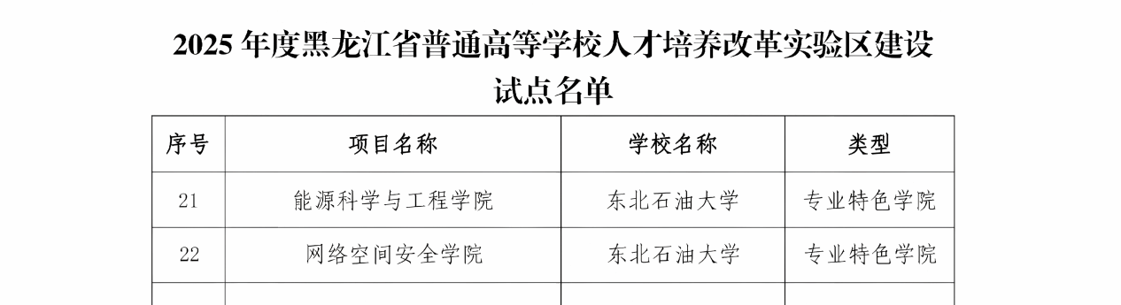 近日,黑龙江省教育厅发布《关于开展高等教育综合改革首批试点的通知》。我院地质资源与地质工程学科相关领域入选全省“101计划”增补试点项目、资源勘查工程专业入选首批本科专业数智升级改造试点项目。此外,我院还支撑页岩油气“地质-工程-装备”一体化专业集群入选全省区域产教融合优势特色专业集群建设试点项目、能源科学与工程学院入选全省人才培养改革实验区建设试点项目。
